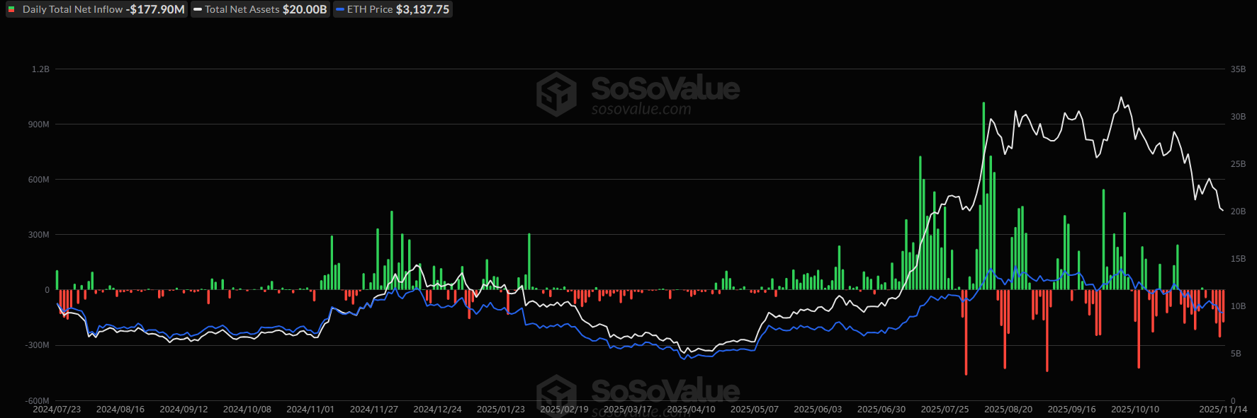 (緑・赤のバーが資金流入出 / 白線が運用資産残高合計/ 青線がイーサリアム価格)SoSoValue提供のチャートより SBI VC トレード株式会社 市場オペレーション部作成11/9~11/15週の主な出来事