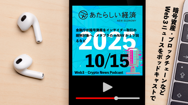 ブロックチェーン・仮想通貨(暗号資産)・フィンテックについてのニュース解説を「あたらしい経済」編集部が、平日毎日ポッドキャストでお届けします。Apple Podcast、Spotify、Voicy、YouTubeなどで配信中。ぜひとも各サービスでチャンネルをフォロー(購読登録)して、日々の情報収集にお役立てください。
