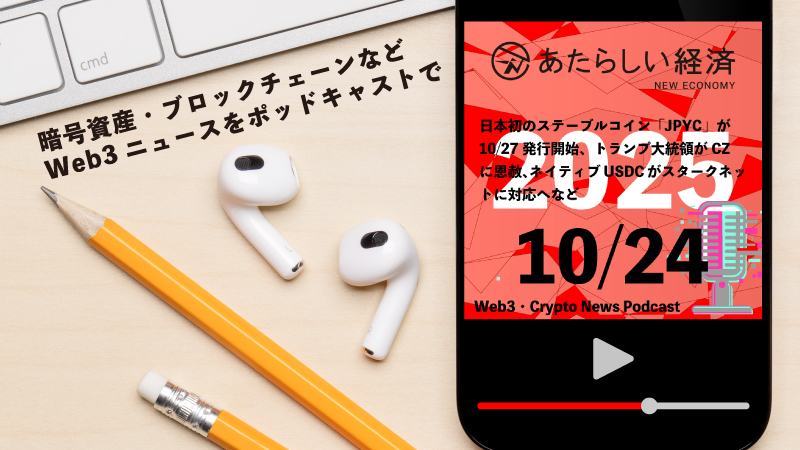 ブロックチェーン・仮想通貨(暗号資産)・フィンテックについてのニュース解説を「あたらしい経済」編集部が、平日毎日ポッドキャストでお届けします。Apple Podcast、Spotify、Voicy、YouTubeなどで配信中。ぜひとも各サービスでチャンネルをフォロー(購読登録)して、日々の情報収集にお役立てください。