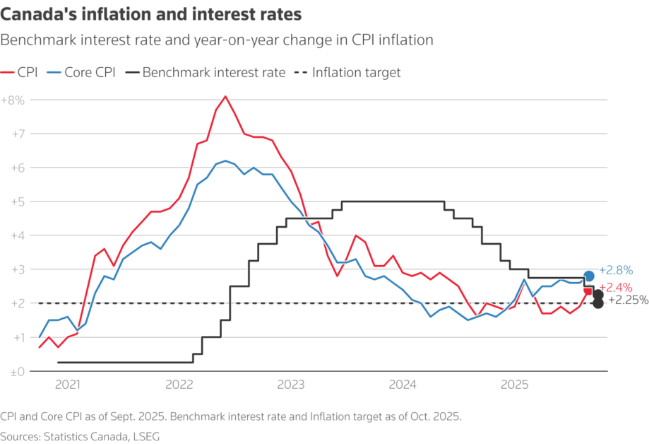 The Bank of Canada lowered its interest rate to 2.25% this week, the lowest level in more than three years. The move aims to ease the effects of an economic slowdown worsened by U.S. tariffs and the inflationary impact of global trade tensions. However, Canadian policymakers have hinted that this may be the end of their easing phase. Markets currently expect the central bank to hold rates steady until at least the end of 2026.