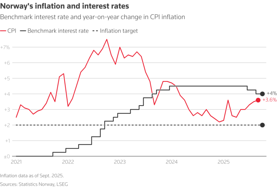 Sweden’s Riksbank last month cut its benchmark rate to 1.75% and signaled that high inflation could prove temporary. Investors believe the central bank is unlikely to reduce rates further before 2026. Sweden’s currency, the krona, has surged about 15% against the U.S. dollar so far this year as markets grow more confident that the Riksbank will hold firm.