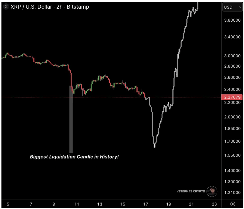In XRP’s case, that intense pressure led to a violent plunge that created a deep low wick to break below $1.6 on its price chart before a quick rebound above $2.2. That wick is central to the argument that the forced selling squeezed both longs and shorts, clearing excess leverage and setting the stage for price discovery to reset. However, a suggestion is that the worst may not yet be fully priced in, and that this purge might continue deeper before sentiment truly turns bullish.
